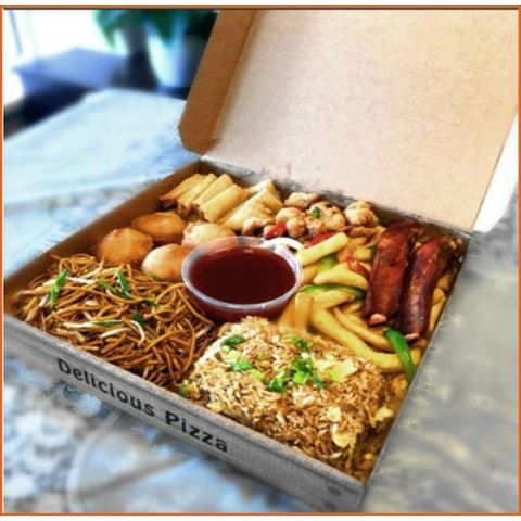 Mini Spring Rolls, Curry Samosas, Chicken Balls, Salt & Pepper Spare Ribs, Chicken Pieces, Chips, Chow Mein, Egg Fried Rice & Curry Sauce -